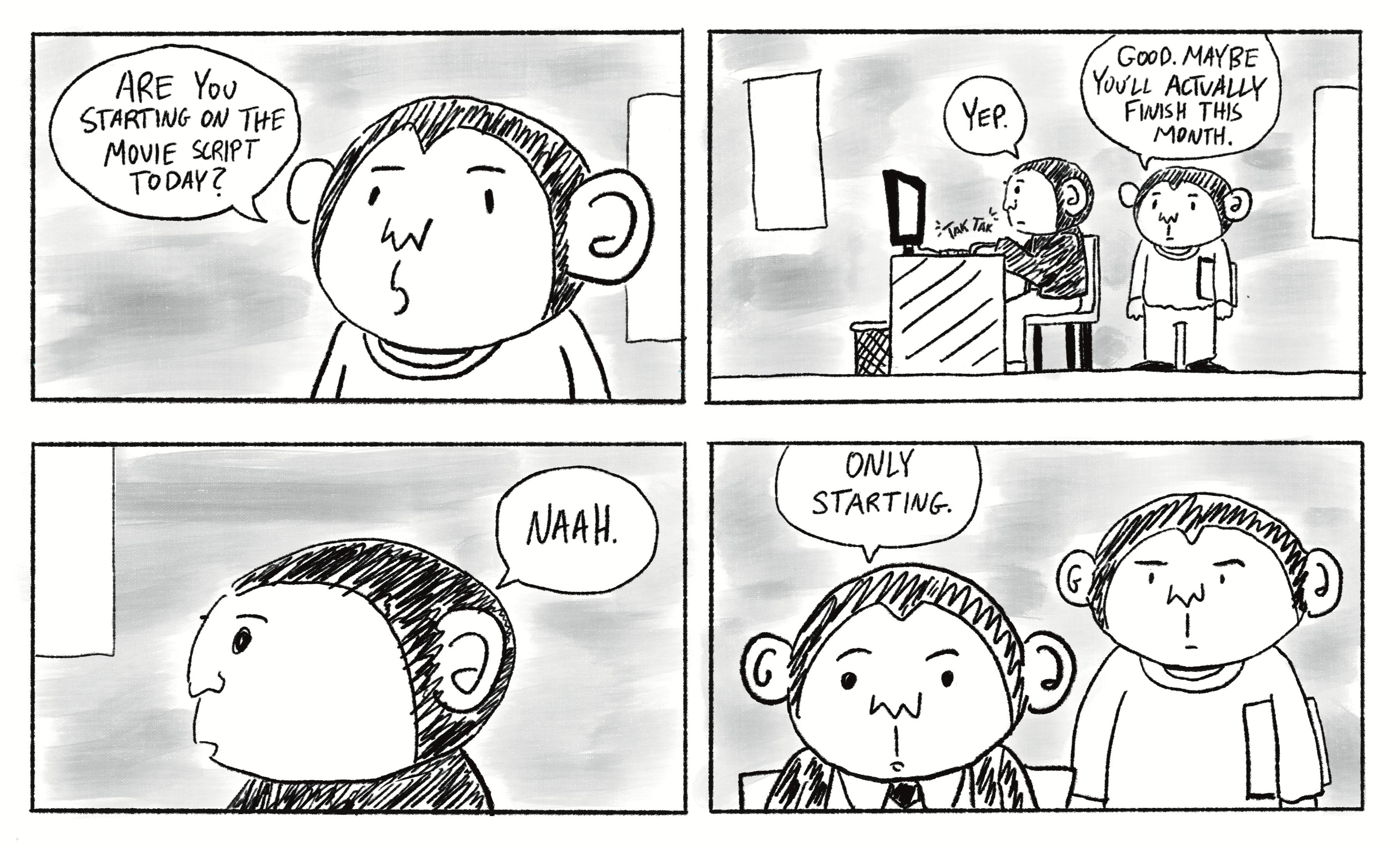 The cartoonish ramblings of a monkey man and his lethargic studio mate. It's a tale as old as time, err... a cautionary tale for any brave soul willing to chase a creative dream.