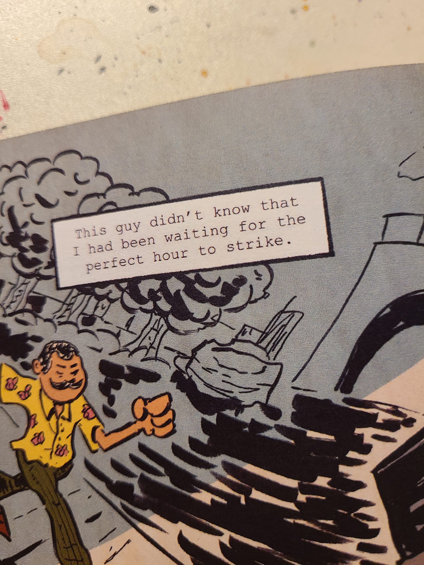 In Funny Page, I am using a mix of digital tools and hand lettering to capture what the story needs. Most of the captions are coming from Tom Graveless, who is a calculated ex-CIA operative, so I am using something like a “typewriter” font. In my head, I see Graveless telling his story in a field report, so I think this method is a good fit.