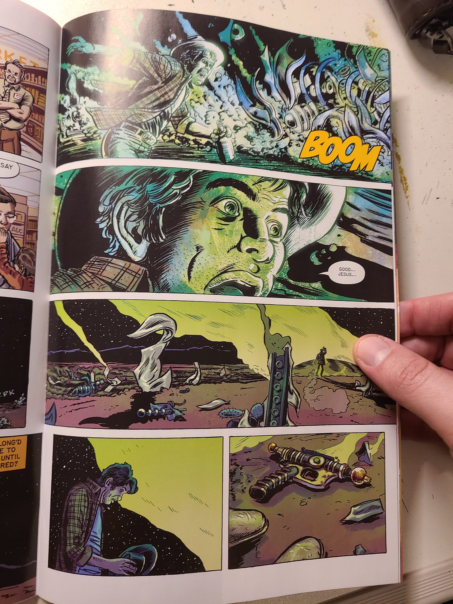 Oni Press recently acquired the “EC Comics” brand and has been releasing new science and horror anthology comics. While I have not read a ton, I love the old EC Comics aesthetic, and I think Oni nailed that classic tone in their renewal. I recently read Cruel Universe #2 and had a blast with it. Something just feels right about short science-horror stories in the comic form. My favorite story in this issue was called “Ray Gun” by Christopher Cantwell and David Lapham.
