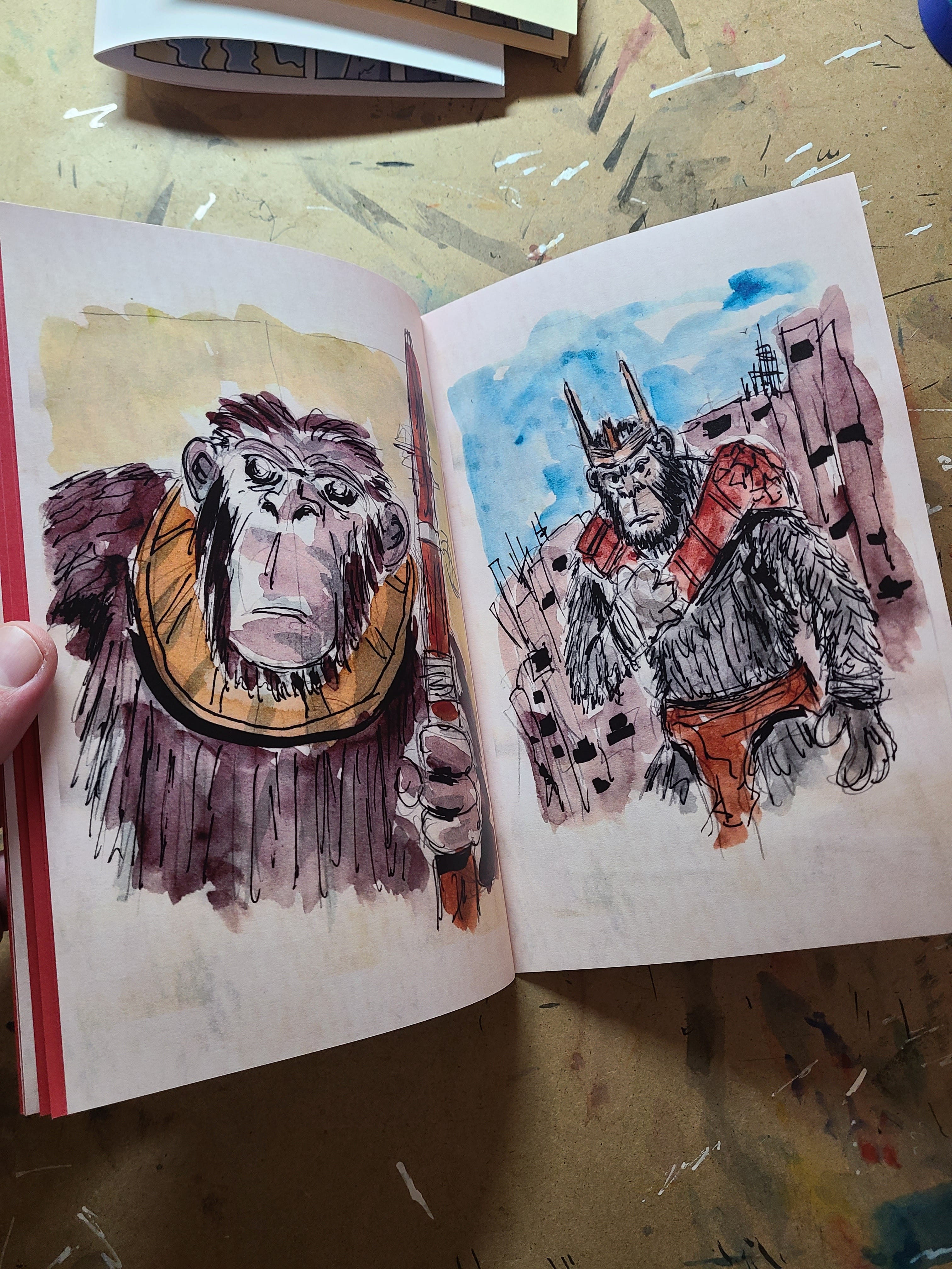 I made a printed zine version of the write-up, titled A Call to the Planet of the Apes. In addition to the essay, I’ve also added some Apes sketches that I did over the course of a couple weeks. I had a lot of fun with these loose inks and watercolors.