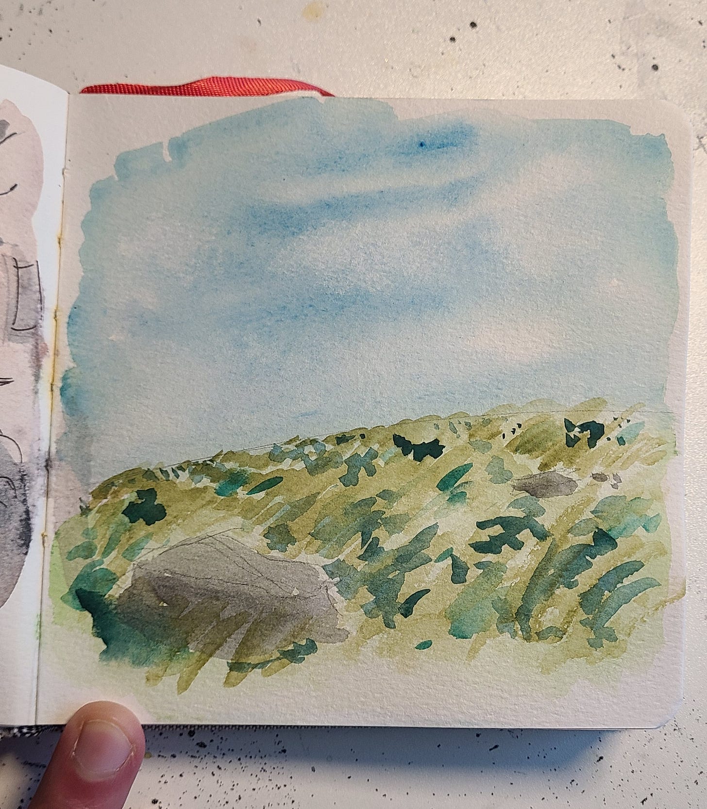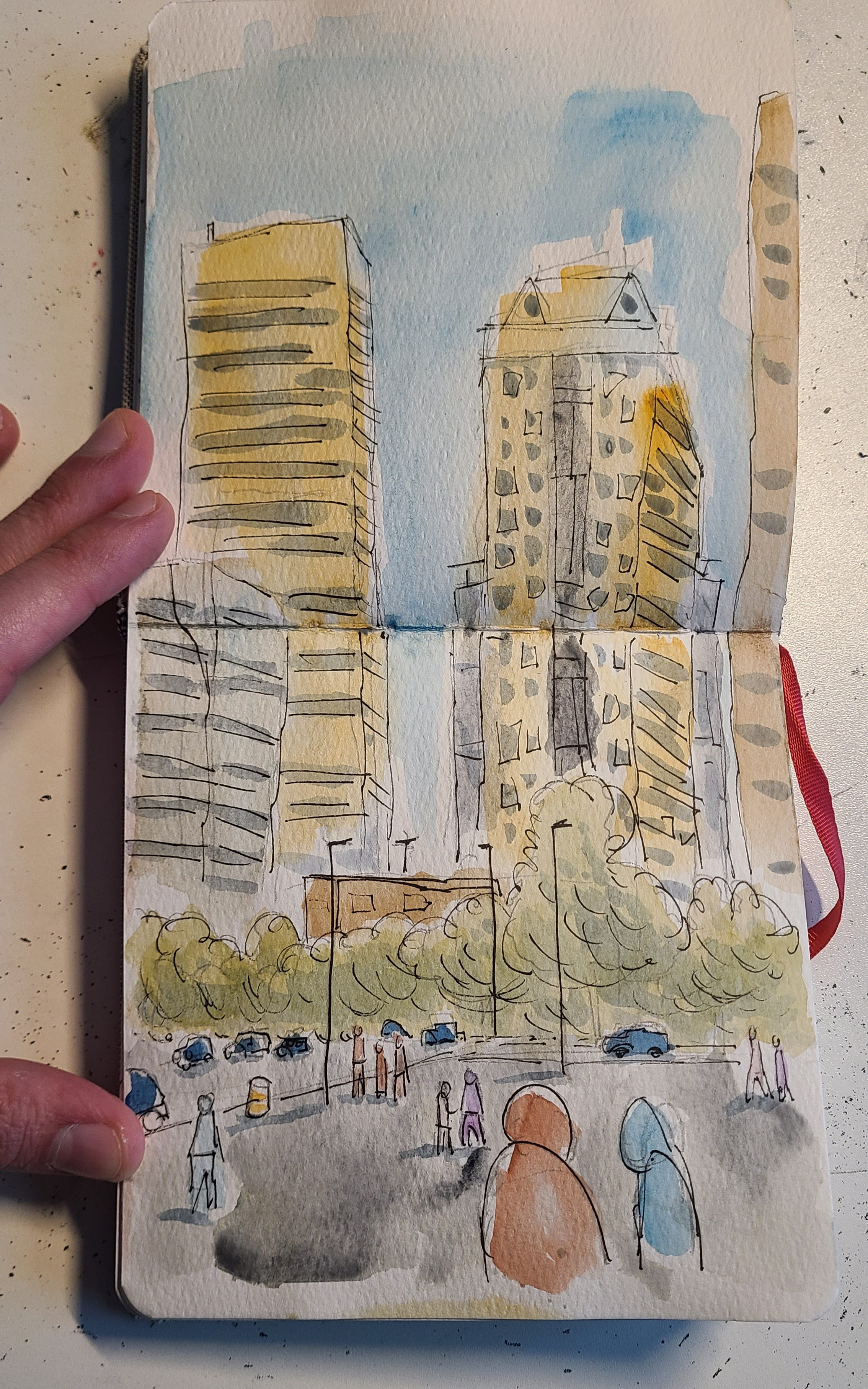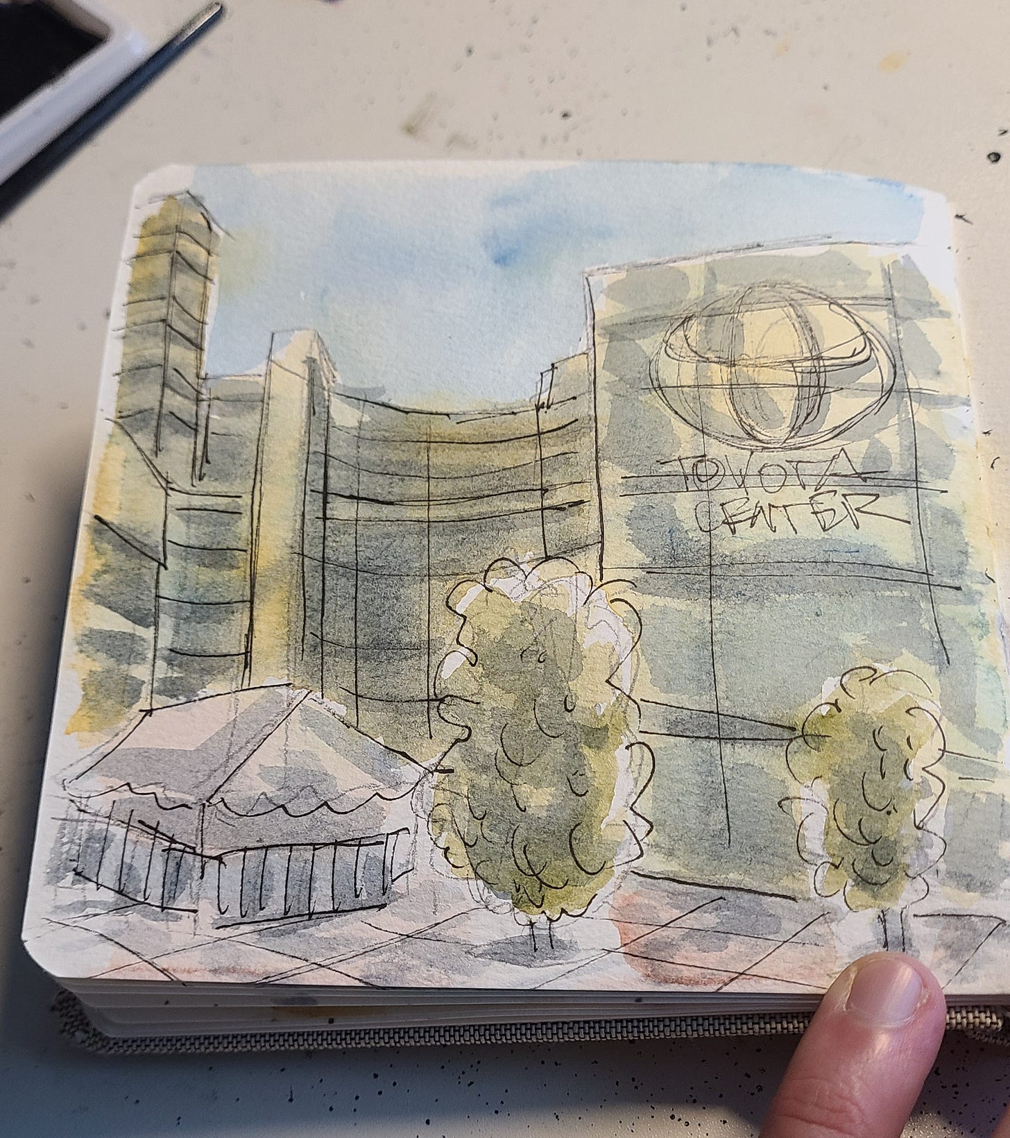 They’re perfectly portable coming in at 5.5” x 5.5” and filled with watercolor paper. I have fallen in love with them. I’m bringing this little guy around with me all the time to capture scenes and moments when I can. It’s almost as if I’m making hand-painted Polaroids - quick snapshots so that I can remember the moments later on.