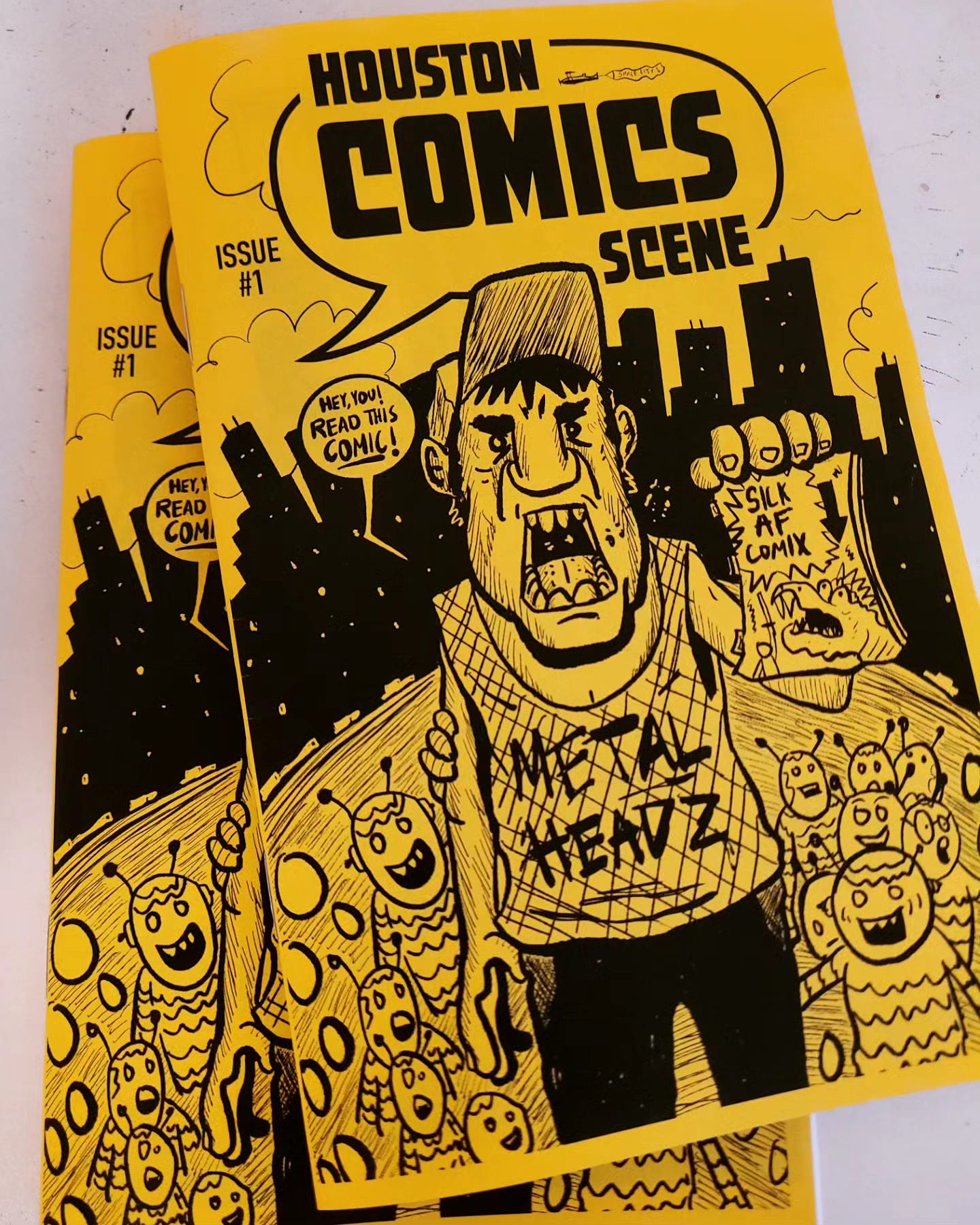 I don't think that I've mentioned it here before so now is the time! My buddies and fellow comic bookers have banded together to create a quarterly comics zine called Houston Comics Scene. The purpose of this publication is to showcase local comics talent and be an advocate for everything related to indie comics. We love and are inspired by collection pieces like Raw, Weirdo, MAD, and Heavy Metal, and while HCS is tiny in comparison, the mission is the same --facilitate any and all comics creativity. The zine features work by all of us founders as well as a bunch of other local creators. Issue #1 is available now and #2 should be in print early October.
